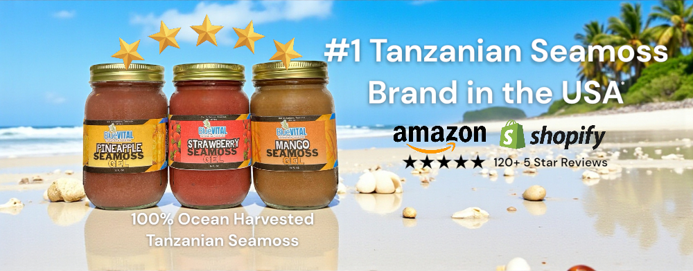 At Blue Vital, we ARE the source! 🌊 Our organic, non-GMO seamoss is hand-harvested in Zanzibar’s pristine waters and made fresh in the USA. Packed with minerals for immunity, digestion, and hormone balance. Pure, affordable, and straight from Tanzania to you!