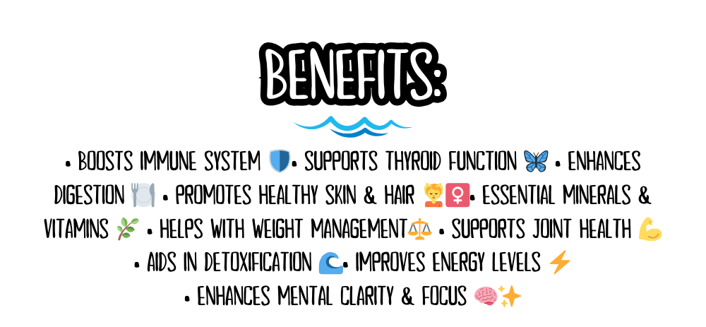 Consult a health care provider if pregnant, breastfeeding, under the age of three, diagnosed with any pre-existing health conditions and/or taking any other supplements/prescription medication. Seamoss should also be avoided by those with allergies to iodine or any trace minerals.